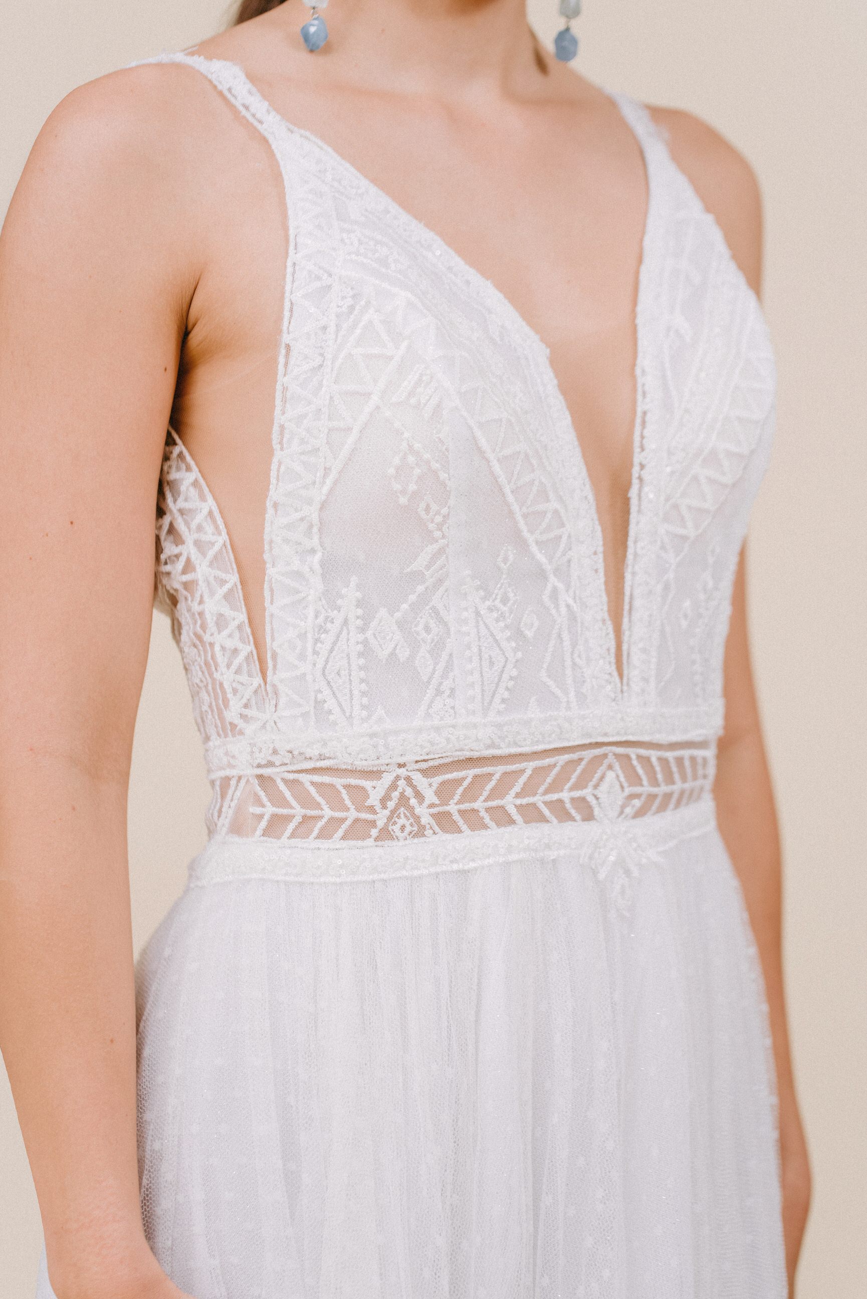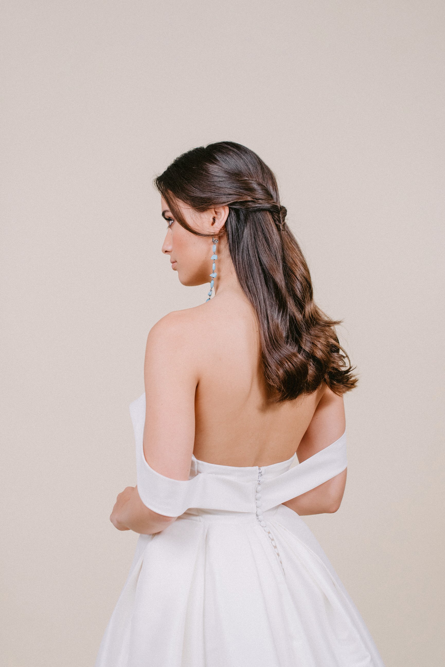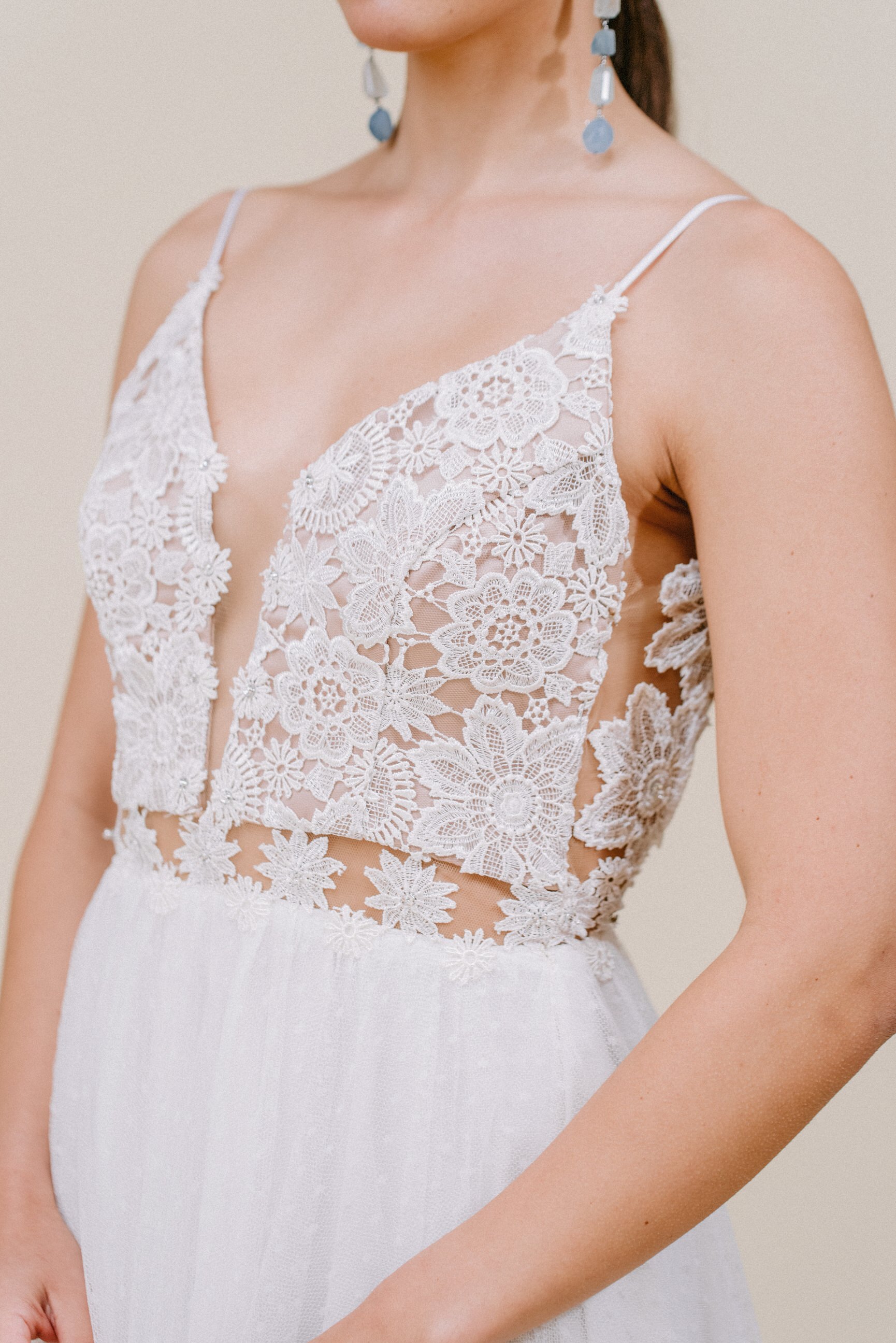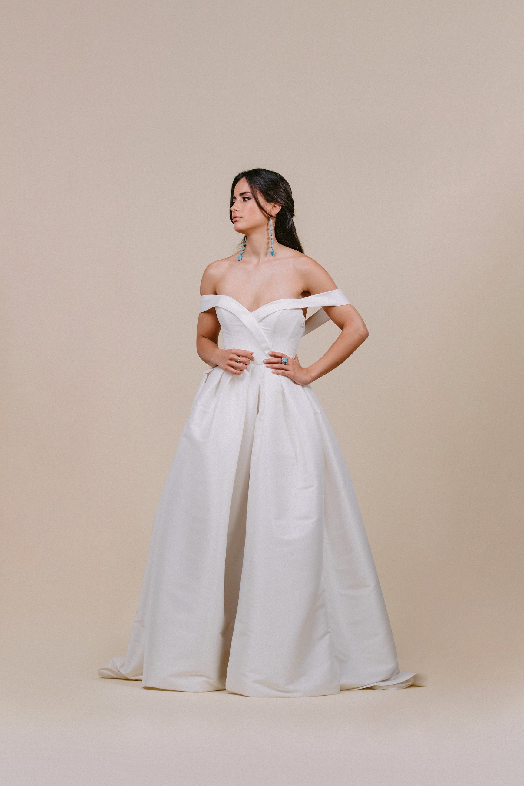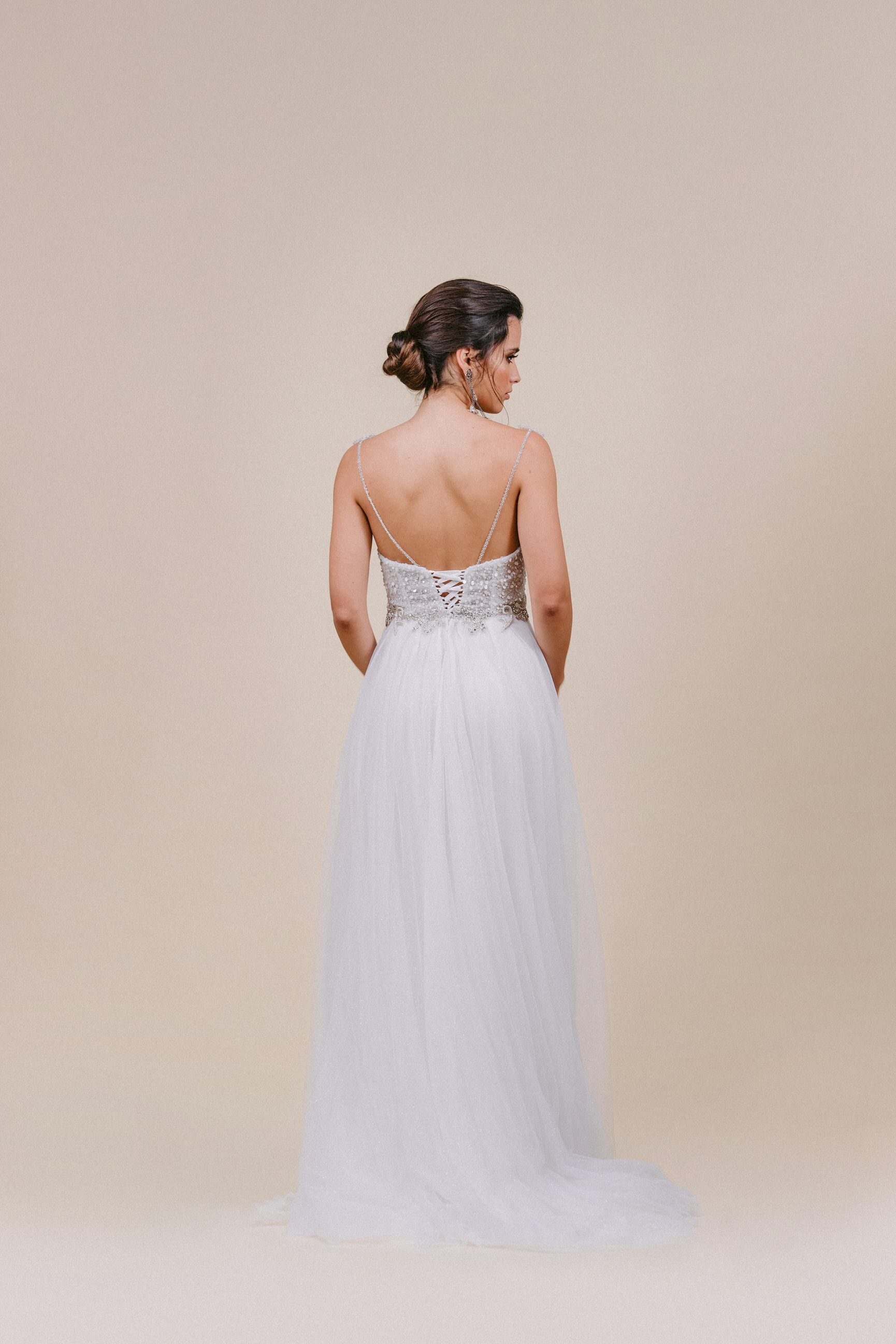 Una colección de vestidos de novia, urbana y sofisticada creada para fluir en cada movimiento, sin limitaciones. Las prendas confeccionadas íntegramente en nuestro atelier de Elche con métodos artesanales, incluyen tejidos ligeros, mangas abullonadas de quita y pon, semi transparencias y siluetas vaporosas.