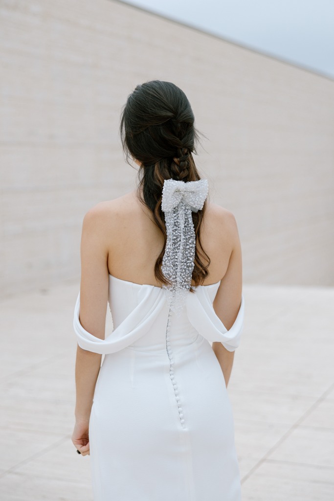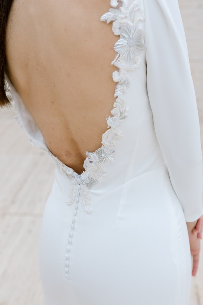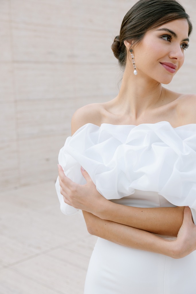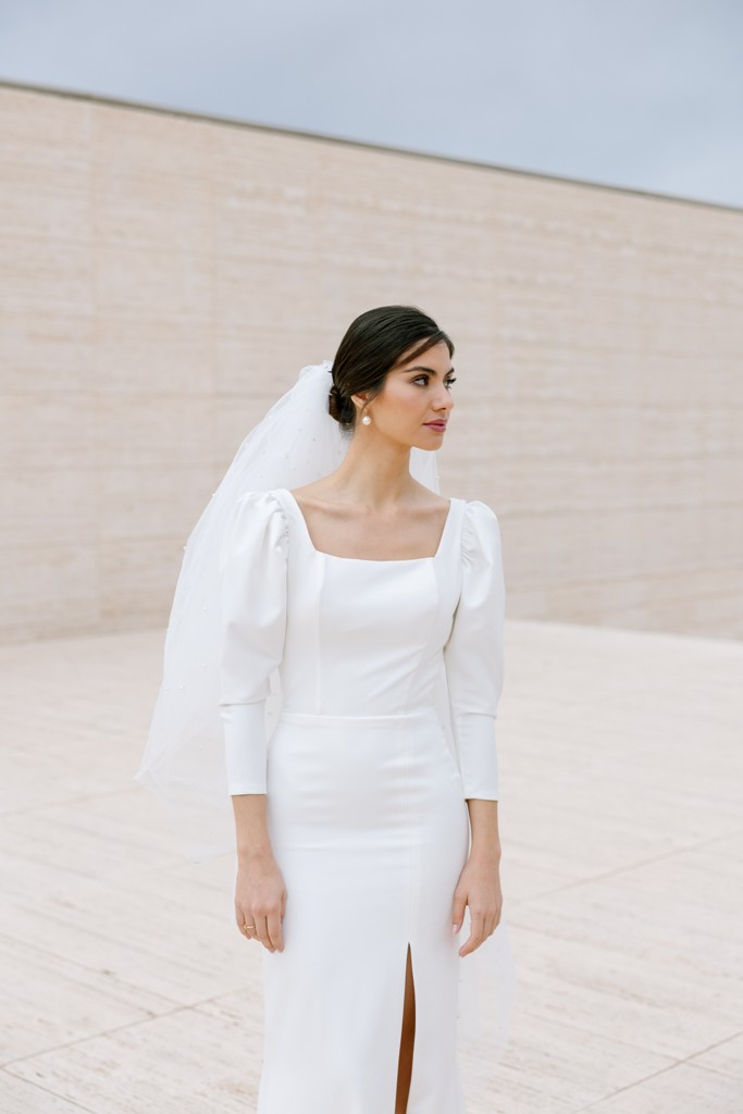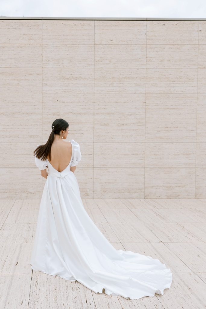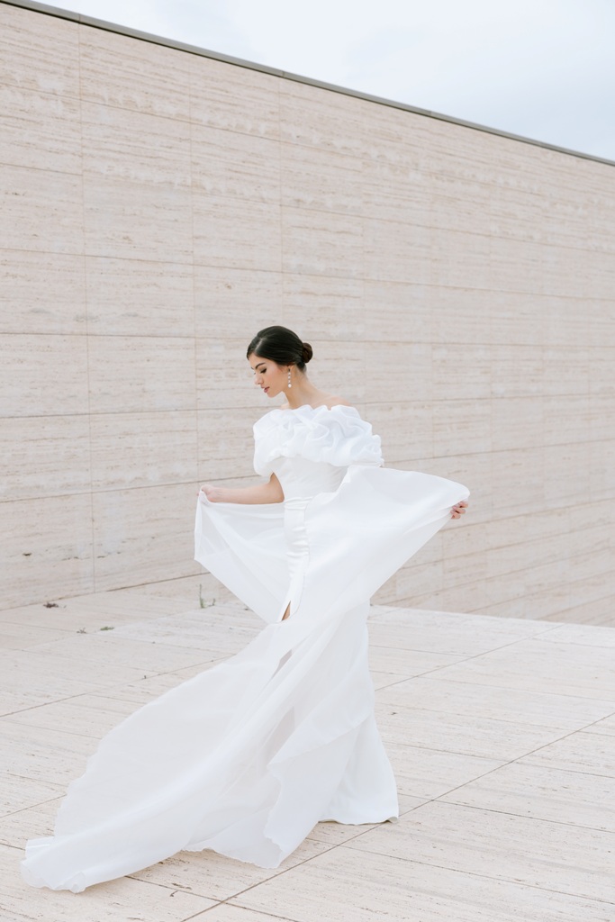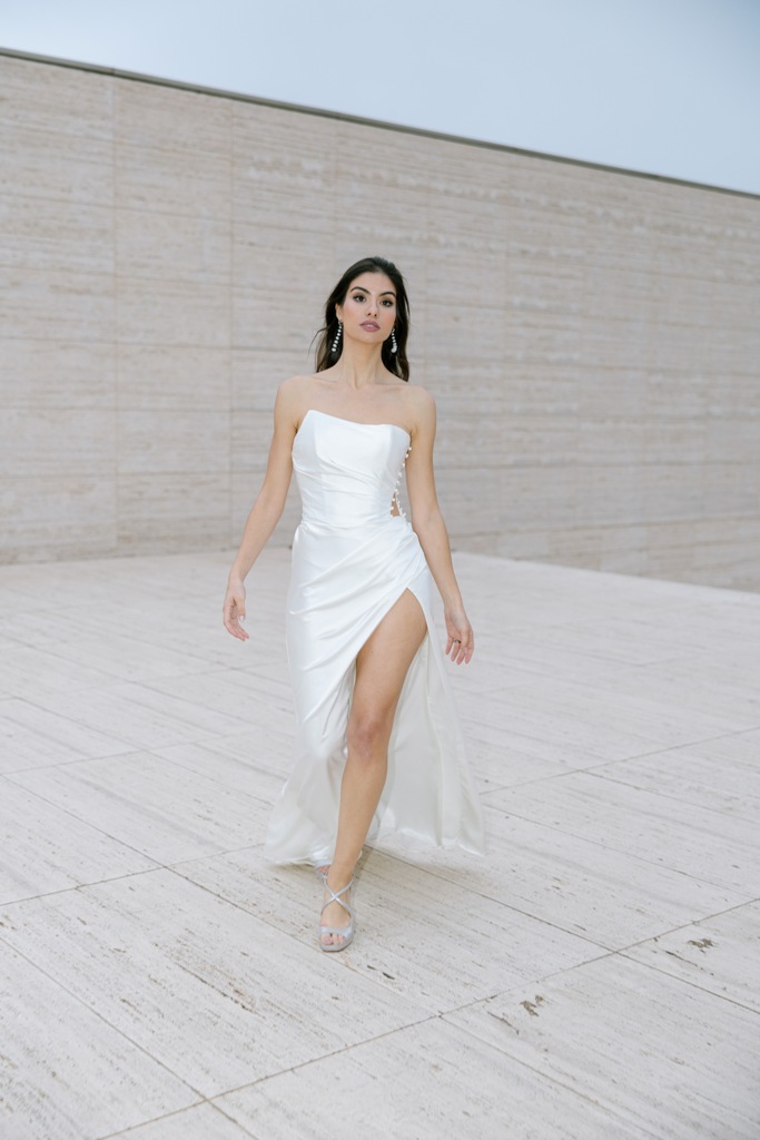 Siza es una colección de vestidos de novia versátiles en el que el mismo vestido se transforma para conseguir que luzca totalmente diferente gracias a mangas desmontables, sobrefaldas, capas y abrigos de organza.