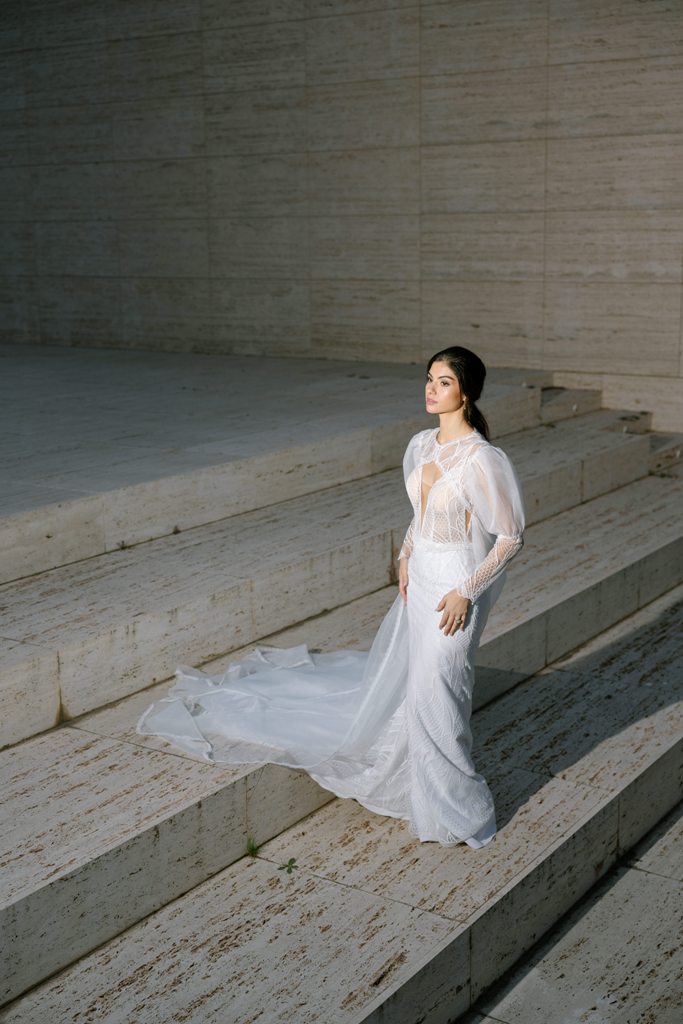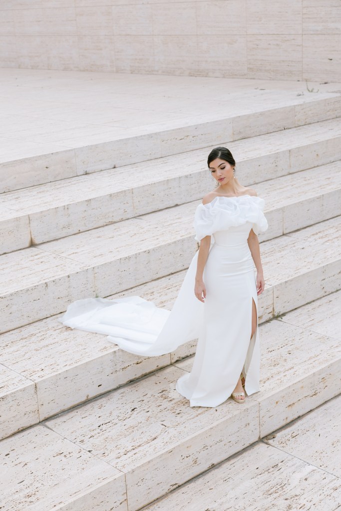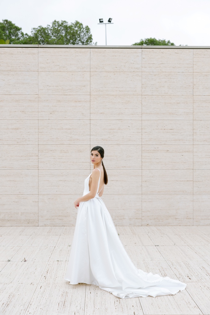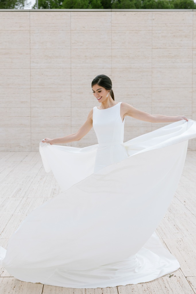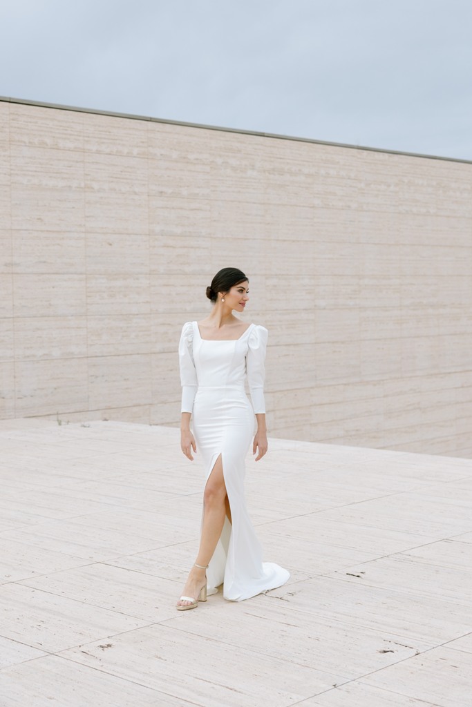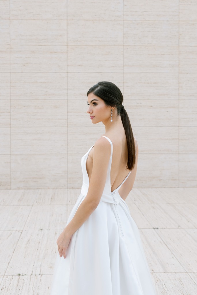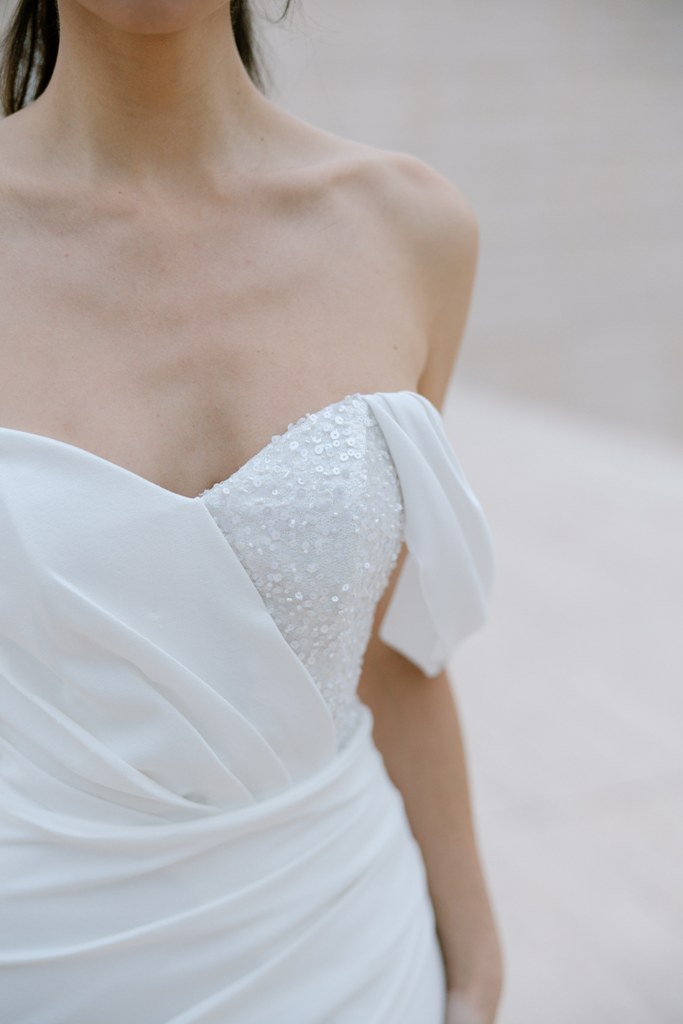 Siza es una colección de vestidos de novia versátiles en el que el mismo vestido se transforma para conseguir que luzca totalmente diferente gracias a mangas desmontables, sobrefaldas, capas y abrigos de organza.